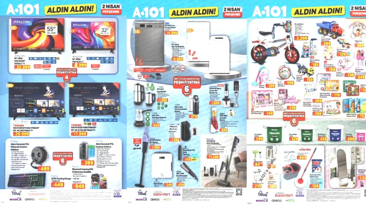 Türkiye genelinde geniş mağaza ağıyla hizmet veren A101, 2 Nisan 2026 tarihli yeni "Aldın Aldın" kataloğunu müşterilerine tanıttı. Zengin ürün çeşitliliğiyle...