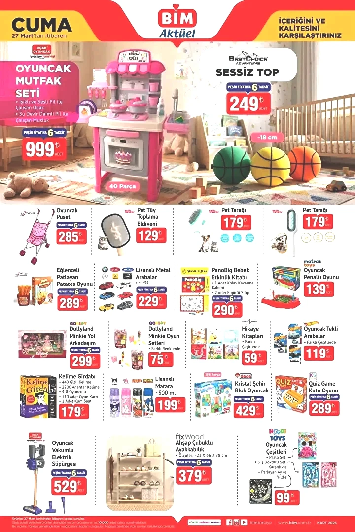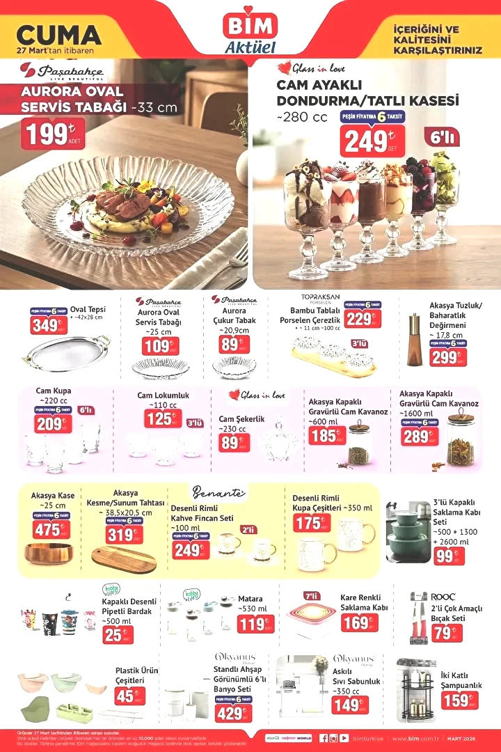 Bim'in aktüel afişi 27 Mart 2026 tarihinden itibaren mağazalarda yerini aldı. Yenilenen Bim katalogundaki ürünler, bu hafta geniş bir seçenek ile broşürde sizlerle buluştu.