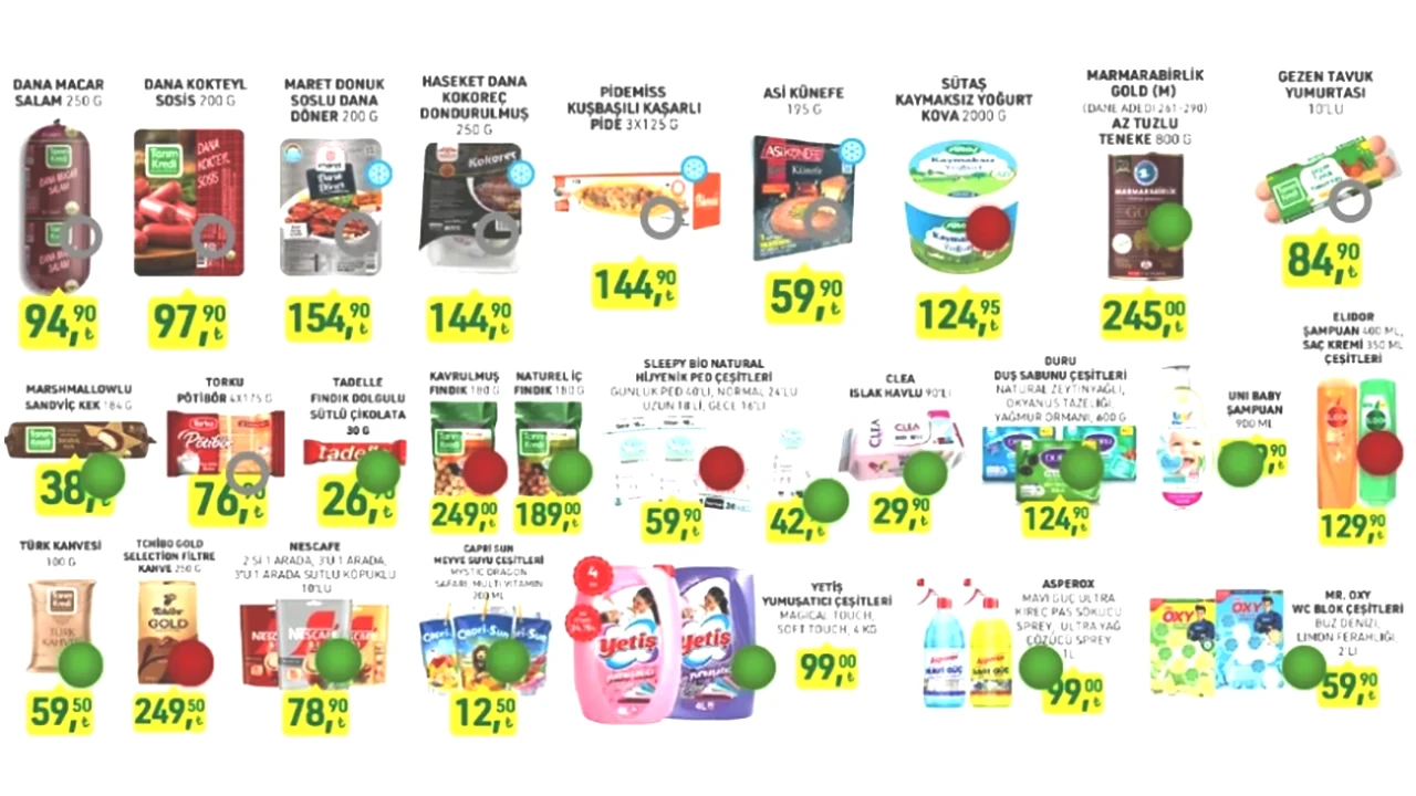 Kampanyanın en dikkat çeken kısmını temel gıda ürünleri oluşturuyor. Mutfak alışverişinde sıkça tercih edilen ürünlerin önemli indirimlerle raflarda yer alması, bu hafta sonu alışverişlerini çekici kılıyor.